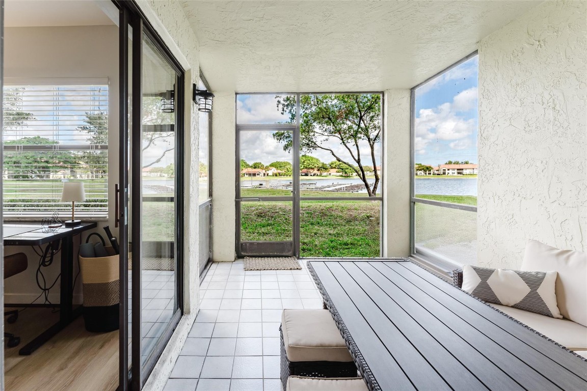 Like no other, this 2 bedroom Plus a den/flex, home truly stands apart thanks to its thoughtful upgrades and premium features. Inside, you'll find a modern smart home setup with Nest thermostats, a reverse osmosis water filtration system connected directly to the refrigerator for crystal clear drinking water and ice, and high end luxury vinyl flooring throughout. The bathrooms have been beautifully upgraded with elegant finishes, and custom double doors open into a versatile bonus room or office. Step outside, and the lifestyle becomes even more exceptional: enjoy direct access from your back patio to the serene lake, main pool, and clubhouse just steps away. This unique combination of luxury upgrades and unmatched location makes this condo one of the most desirable in the community.