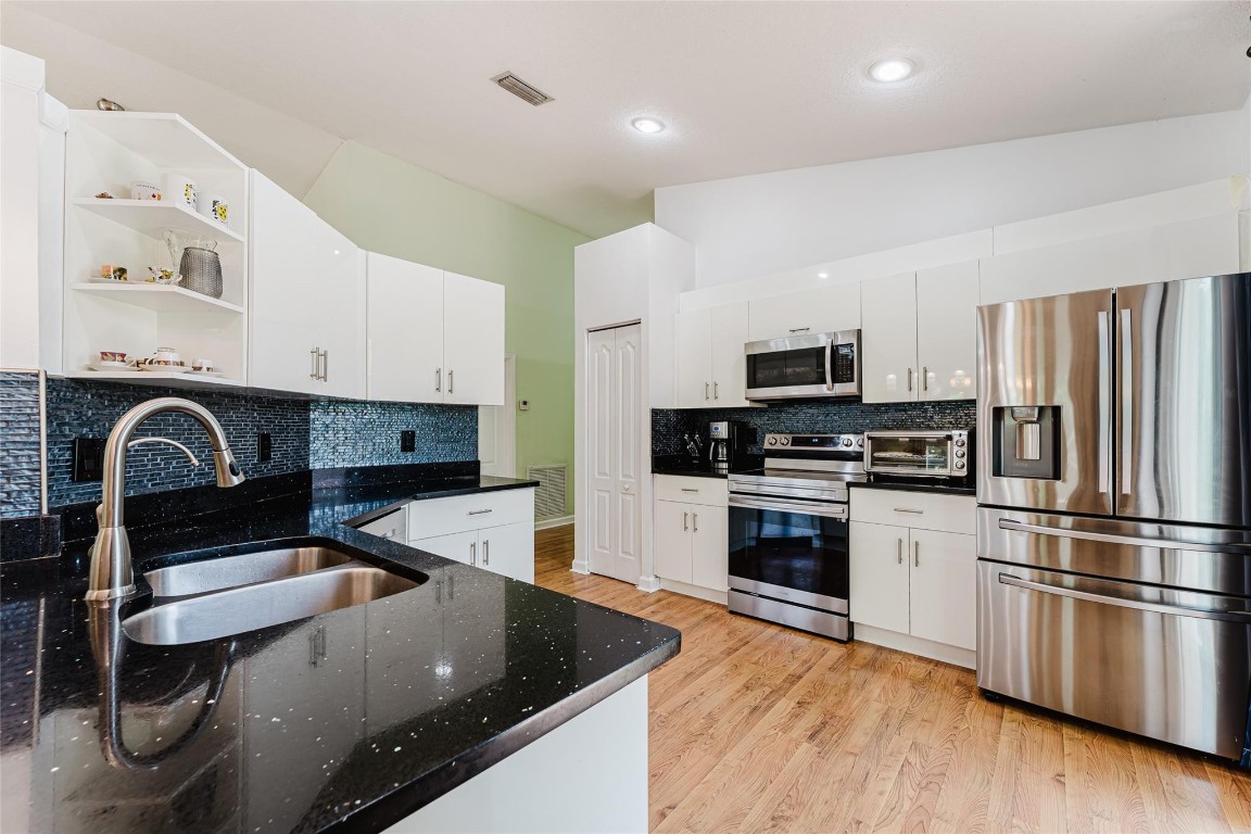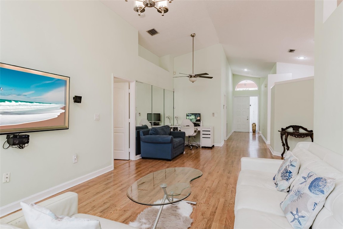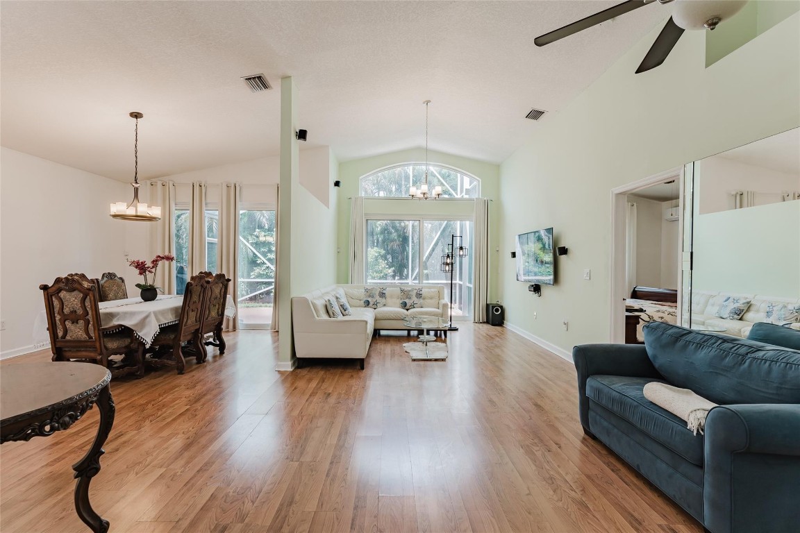 Freshly painted SINGLE STORY home in the desirable GATED community of Lennox isles featuring high ceilings, open split bedroom floor plan, and IMPACT WINDOWS. This home has a newer A/C (2022), Water heater (2022) New garage motor & entry panel, whole house water filtration system with additional drinking filtration mount under sink, smart Samsung range and oven, new dishwasher and refrigerator (2023), smart (Wi-Fi control) sprinkler system, new PVC fence and landscaping including tropical trees and plants. Enjoy kitchen garden views and lots of natural light throughout. Amenities include a gym with state-of-the-art equipment, walking trail, park, benches, tranquil water views, BBQ area, picnic area, playground, basketball courts, tennis courts, & a heated pool.
