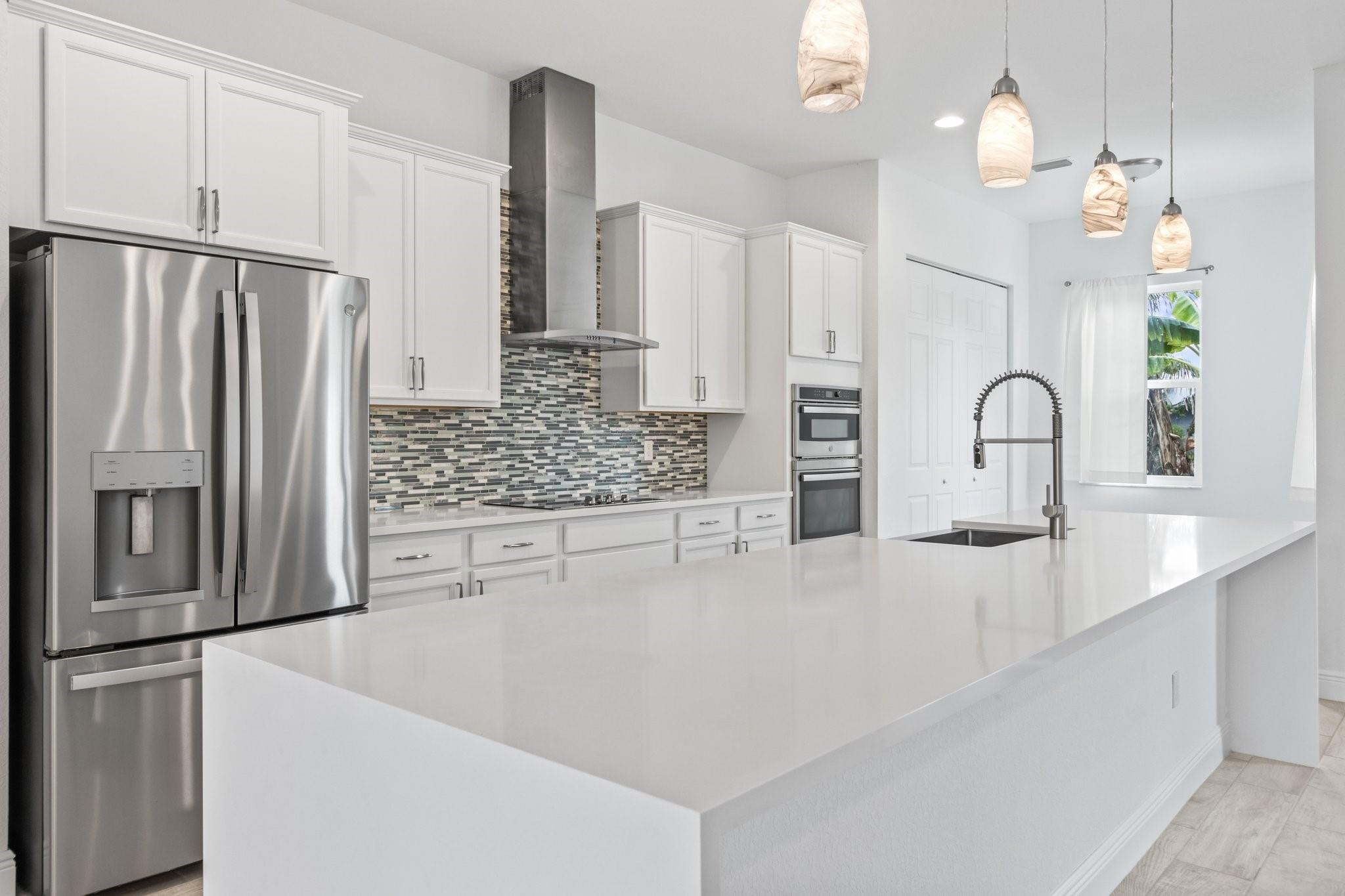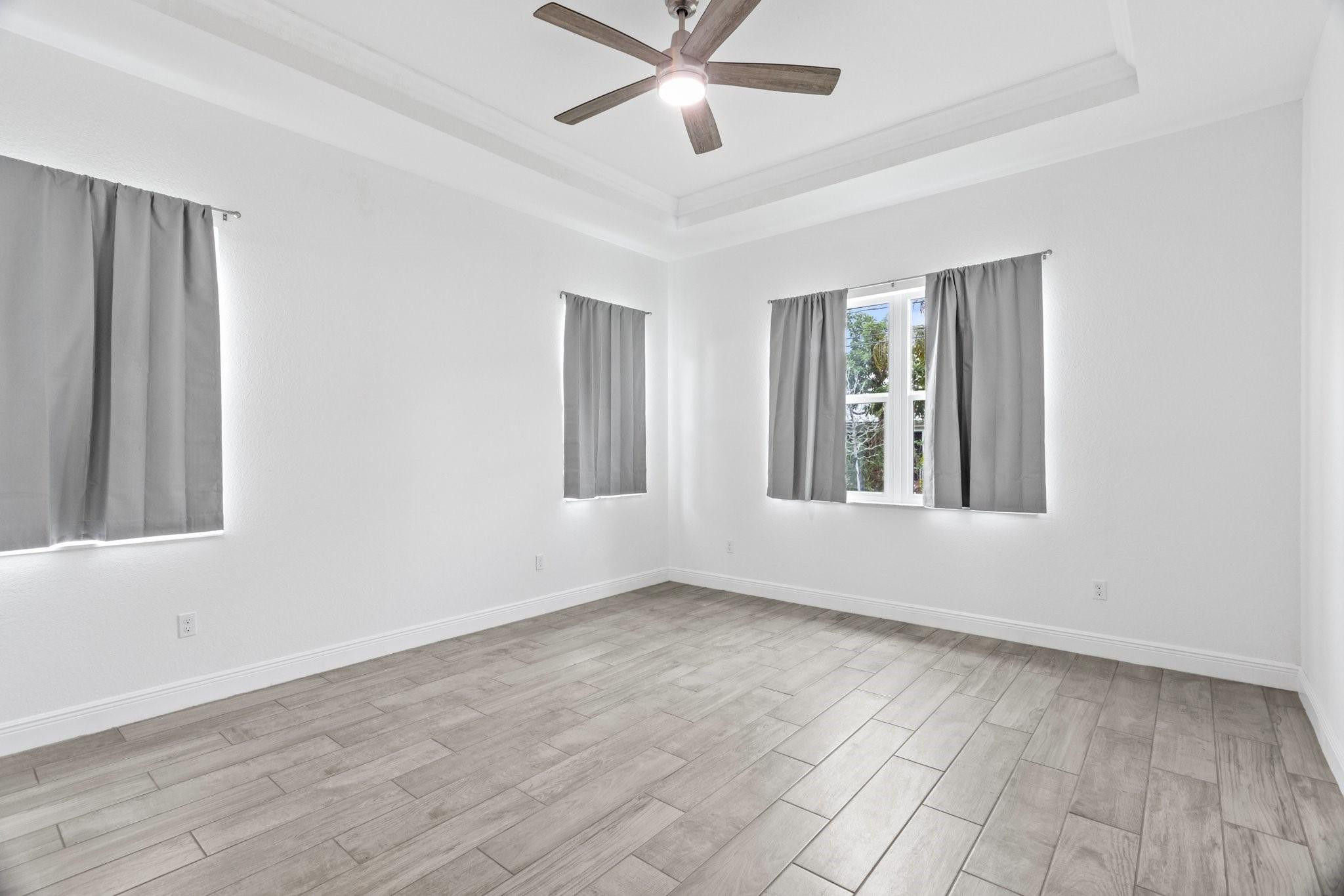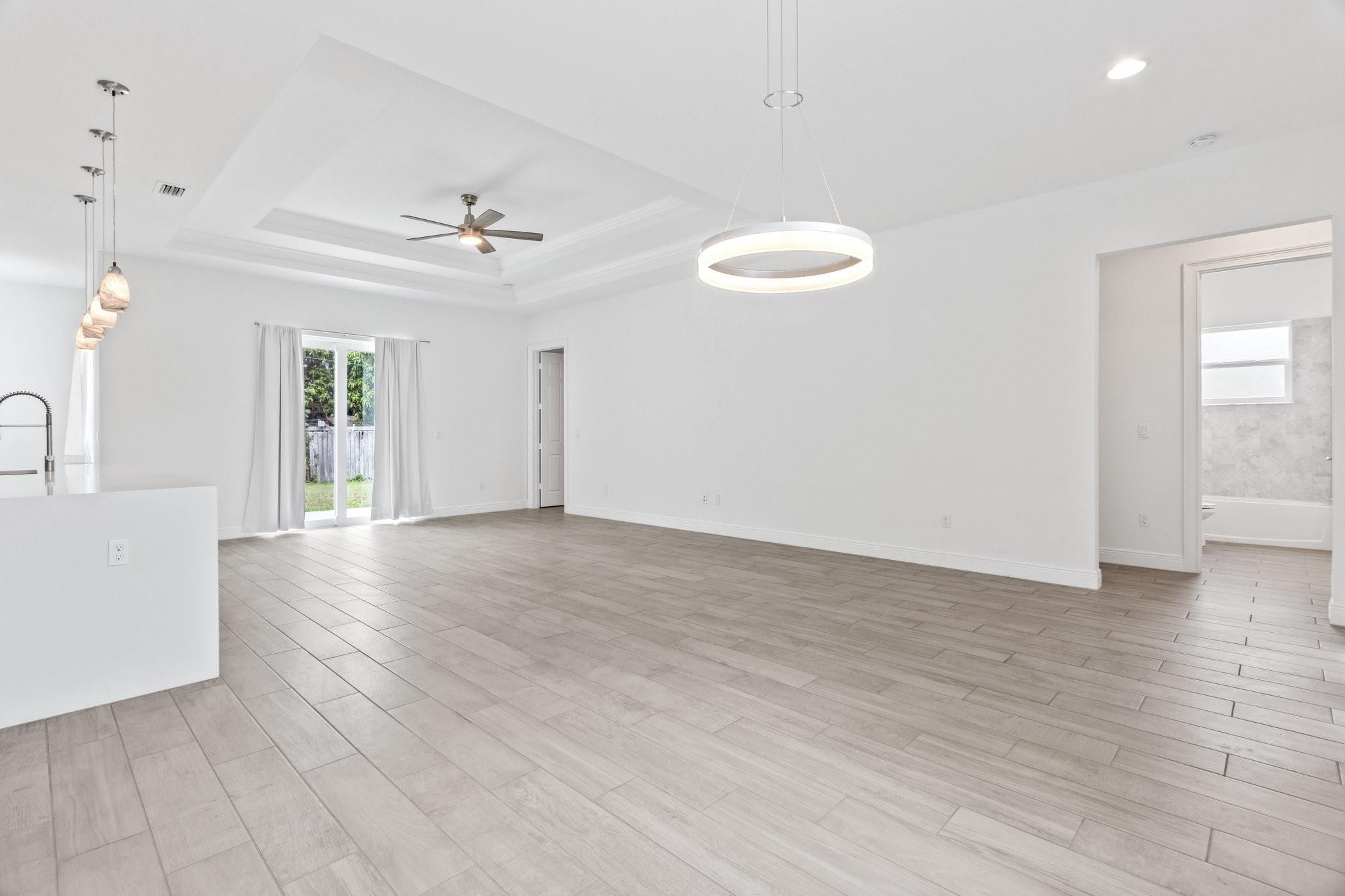 Newer single story home. Tile plank flooring throughout, modern gourmet kitchen with pendant lighting and a oversized long island with plenty of room for extra barstool seating. This home features a split bedroom floor plan, open living spaces, breakfast eating area, tray ceilings, spacious laundry room with a washer and dryer, walk in closets, spacious garage, back yard, and circular driveway with lots of room for parking. Close to shopping, dining, and easy access to major highways.